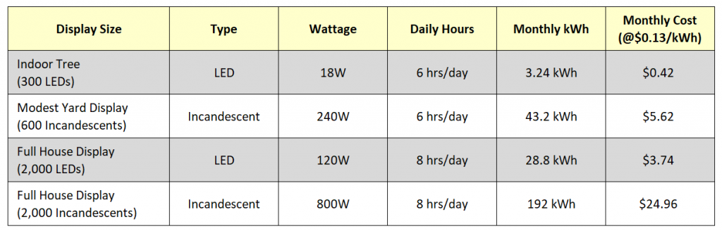 Switching from incandescent to LED lights can cut your Christmas lighting power bill by 80–90%!